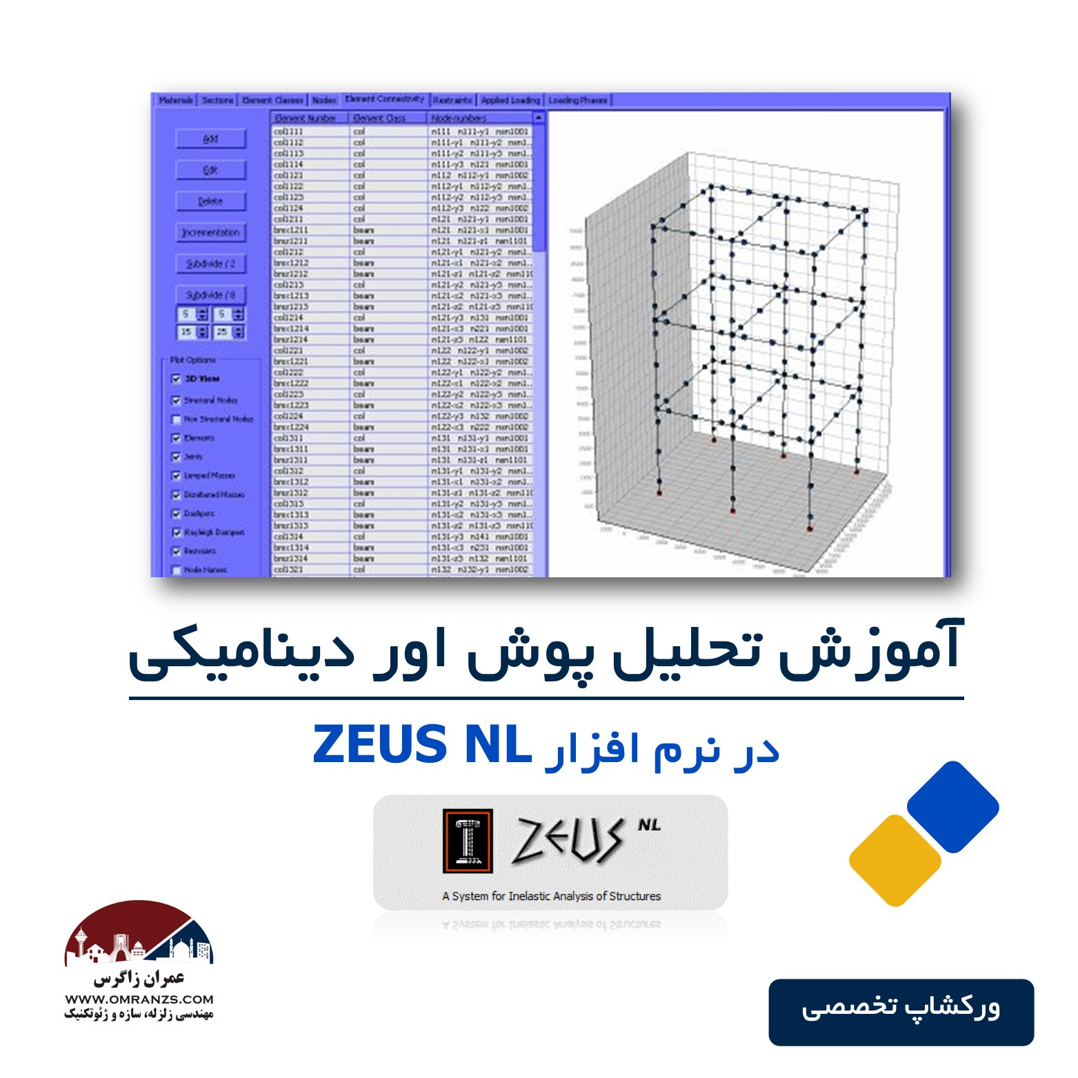 ورکشاپ رایگان آموزش تحلیل Dynamic Pushover در نرم افزار ZEUS NL